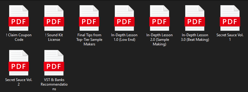 I've included all the knowledge, secret tips, and lessons that I and other sample makers have gained in the music industry into these PDF files. The value you'll gain from these resources is extraordinary and exclusively featured in this collection for a limited time. Unlock new methods for sample making, in-depth lessons, recommendations for VSTs and banks, tips from many Billboard sample makers, and the secret sauce to enhance your production. Meaning tips from, for example, MacShooter, Trifreeze, Visionexe, ProdbyiiiInfinite, XetroBeatz, and many more.