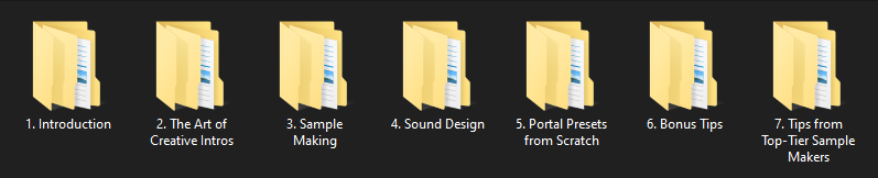Prepare to elevate your Production skills with 4.5GB of Exclusive made Courses and with much anticipation, I'm excited to introduce my voice-overs on these Courses. I've received a lot of feedback suggesting voice-overs, tutorials for Portal Presets from Scratch and much more... so here we are! Inside you will also see Tips from Top-Tier Sample Makers, that are dropping their gems for this Collection exclusively. They will be sharing their Creative Process and Gems, unlike anything you heard before for creating impactful Beats and Samples. Take a look at the topics yourself below!